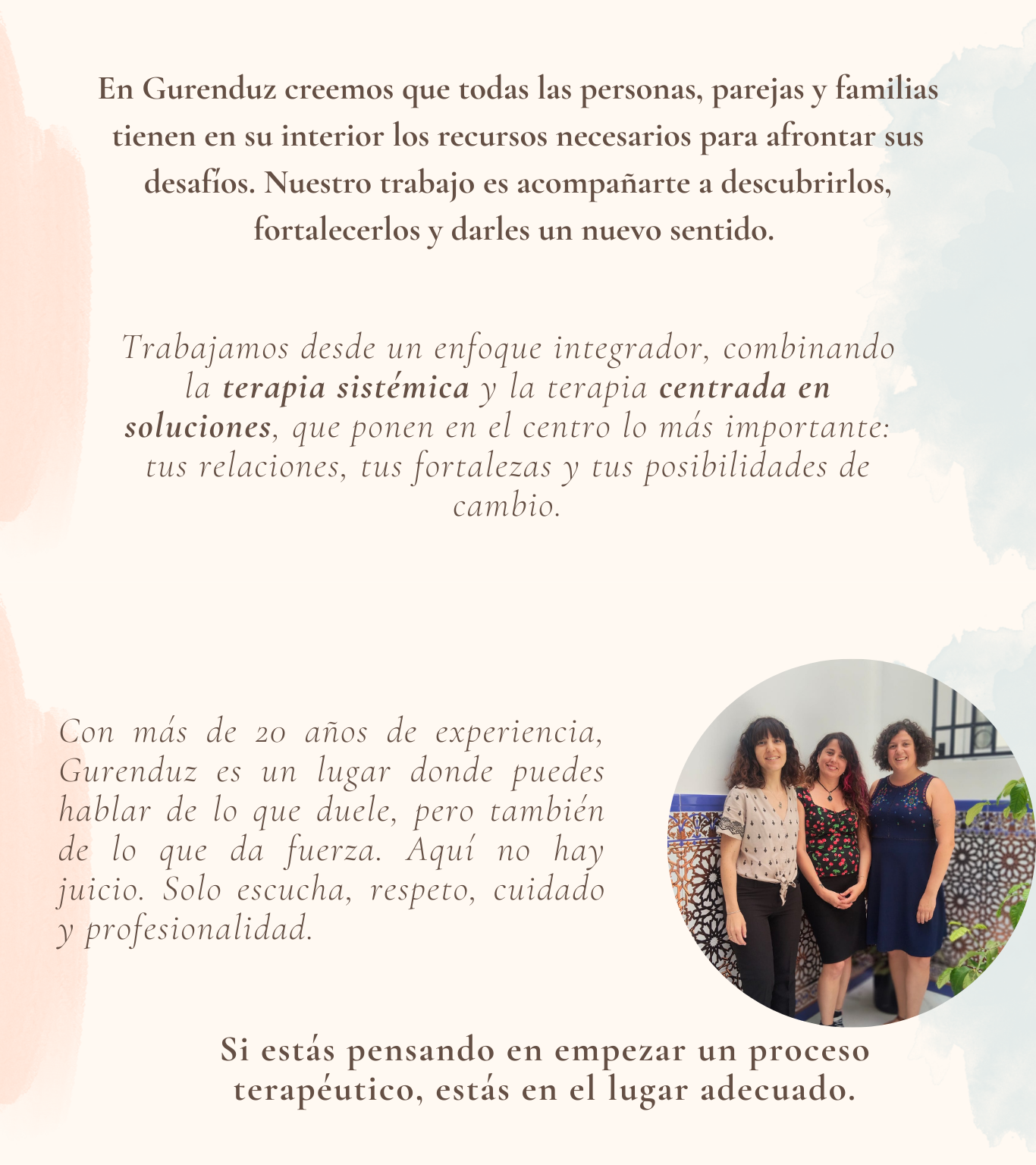 Te acompañamos a recorrer las dificultades que en estos momentos te hacen daño, con profesionalidad y amor.